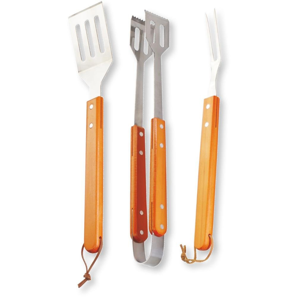 3 kusy grilovacího náčiní Vidlička, obracečka, kleště Délka 38,5 - 39,5 cm Bambusové rukojeti Nerez Více informací