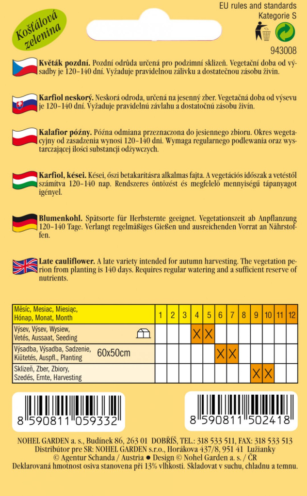 Pozdní odrůda určená pro podzimní sklizeň. Vyžaduje pravidelnou zálivku a dostatečnou zásobu živin. Vegetační doba od výsadby je 120-140 dní. Více informací