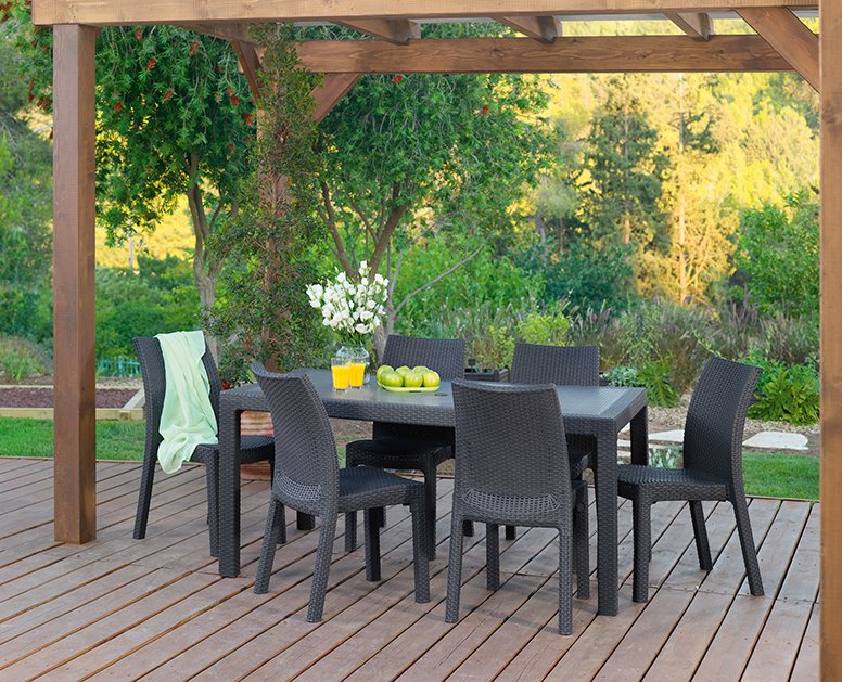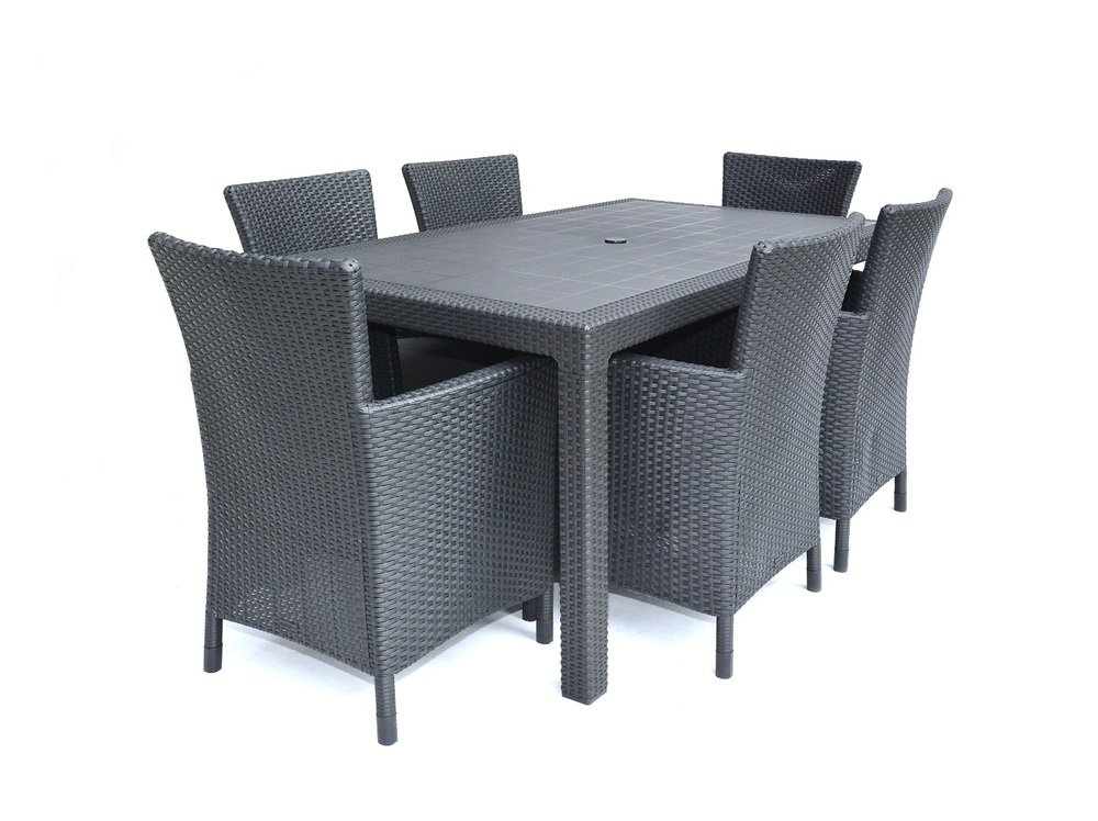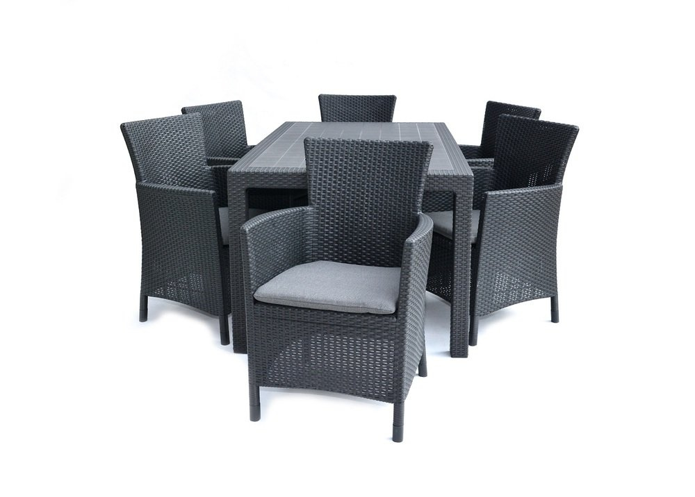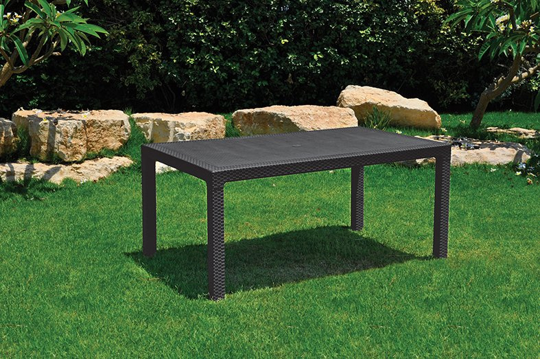 Obdélníkový plastový stůl od firmy KETER. Moderní vzhled - imitace ratanové struktury. Stůl je vhodný k usazení až 6 osob. Stůl je odolný nepřízni počasí i UV záření. Snadná údržba!