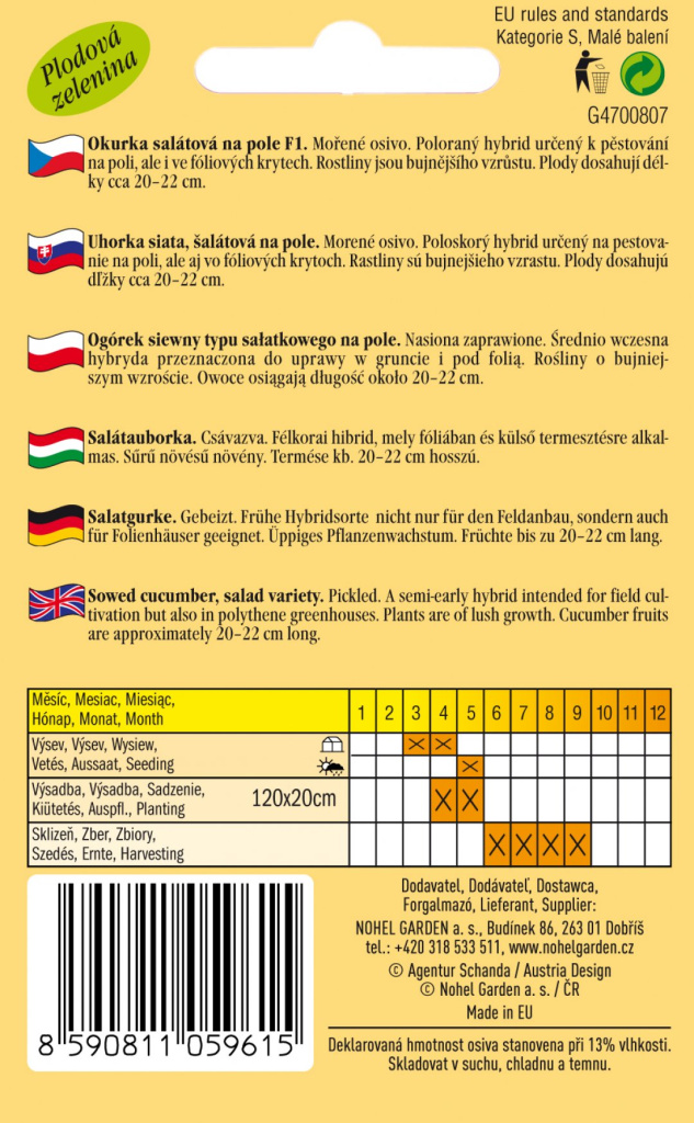 Mořeno Captanem. Poloraný výnosný hybrid určený k pěstování na poli, ale i ve fóliových krytech. Rostliny jsou bujnějšího vzrůstu. Plody dosahují délky až 30 cm. Více informací